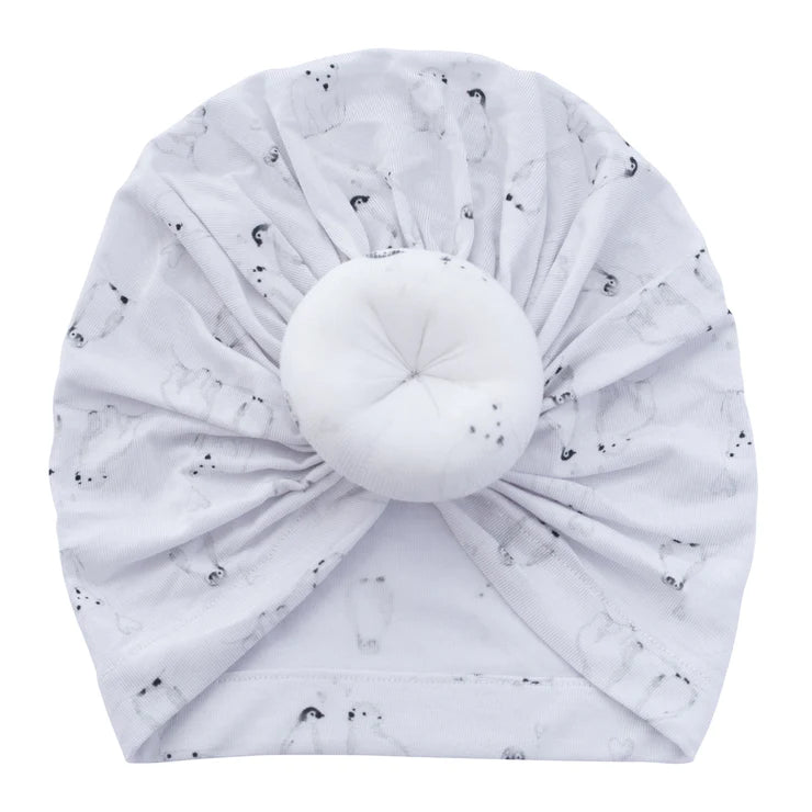 A delightful design of charming polar bears and dainty penguins, our Riley turban by Kute Cuddles is the cutest way to amp up your bubba’s style.