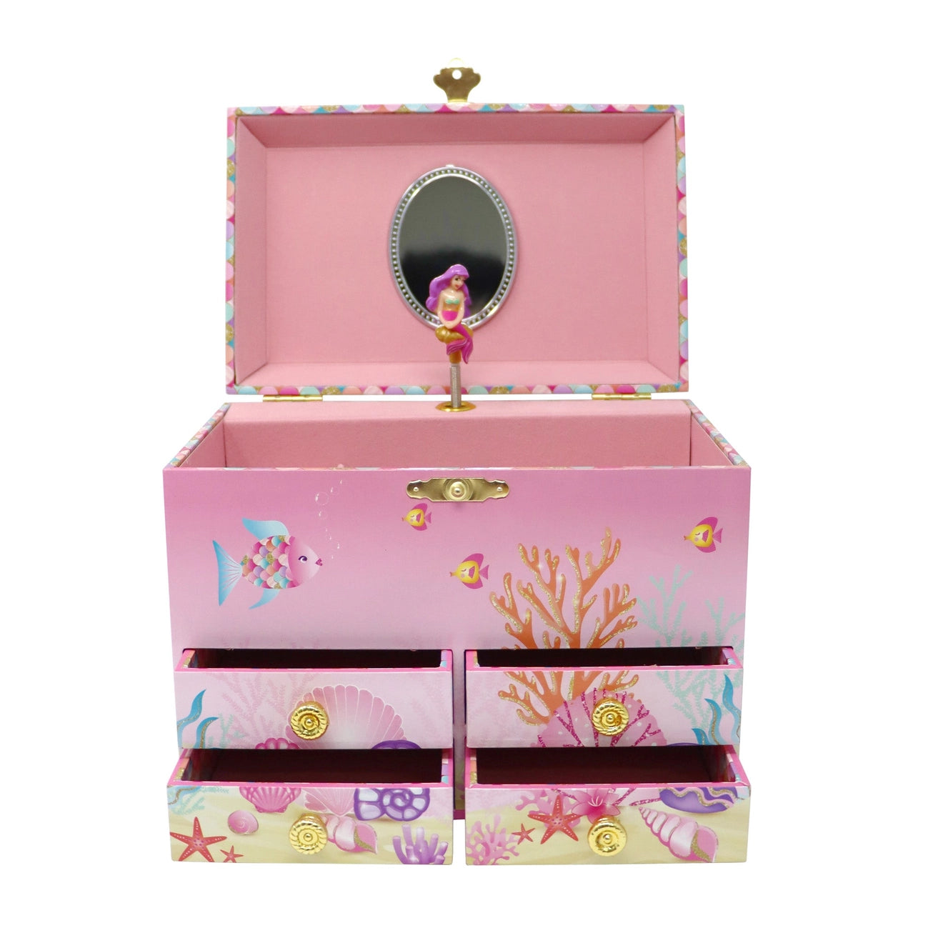 Enchanting Mermaid Musical Jewellery Box is a limited edition by Pink Poppy. A stunning keepsake for any young jewellery enthusiast. This exquisite jewellery box features a captivating mermaid illustration with shimmering rainbow scales, bringing the magical world of mermaids to life, complete with intricate detailing and vibrant colours that will captivate the imagination.