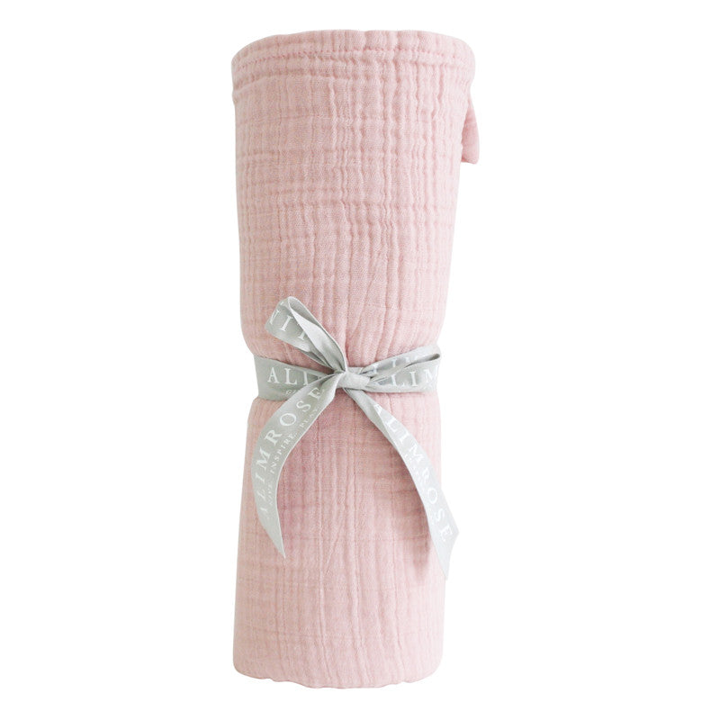 A stunning rosewater colour swaddle. Measures at a generous size of 120cm x 120cm and machine washable. 100% cotton swaddle.